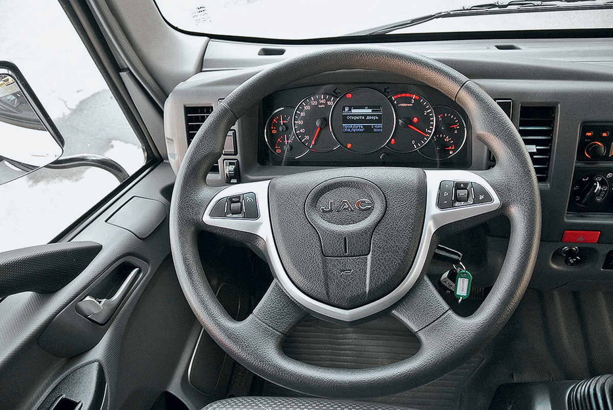 Уделил JAC Motors внимание и российской среде обитания своего детища. В «базе» шасси оснащается более мощным отопителем, топливным фильтром с подогревом и сепаратором, подогревом зеркал заднего вида, морозоустойчивыми резиновыми деталями, дополнительным утеплением и шумоизоляцией кабины, москитной сеткой с теплоизоляционным экраном радиатора двигателя, защитой картера двигателя и коробки передач, закрытым аккумуляторным ящиком, предпусковыми нагревателями масляного картера и топливной системы двигателя, подключаемыми к электросети напряжением 220 В, надежной электропроводкой Bosch с хорошо защищенными разъемами. В качестве опции предлагается предпусковой жидкостный подогреватель Webasto. Планируется установить дополнительную теплоизоляцию на переднюю панель кабины и доработанные сиденья.