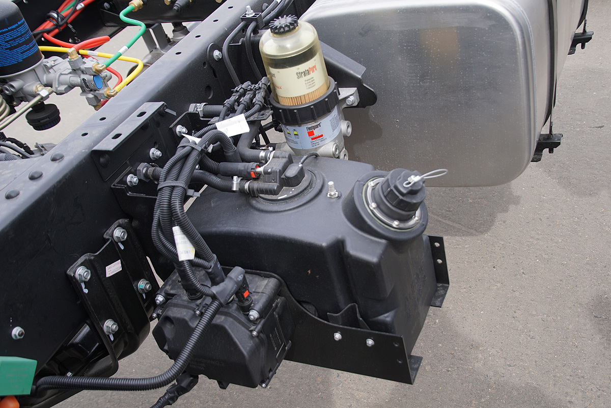 Бачок с жидкостью AdBlue, рядом топливный фильтр с подогревом и сепаратором