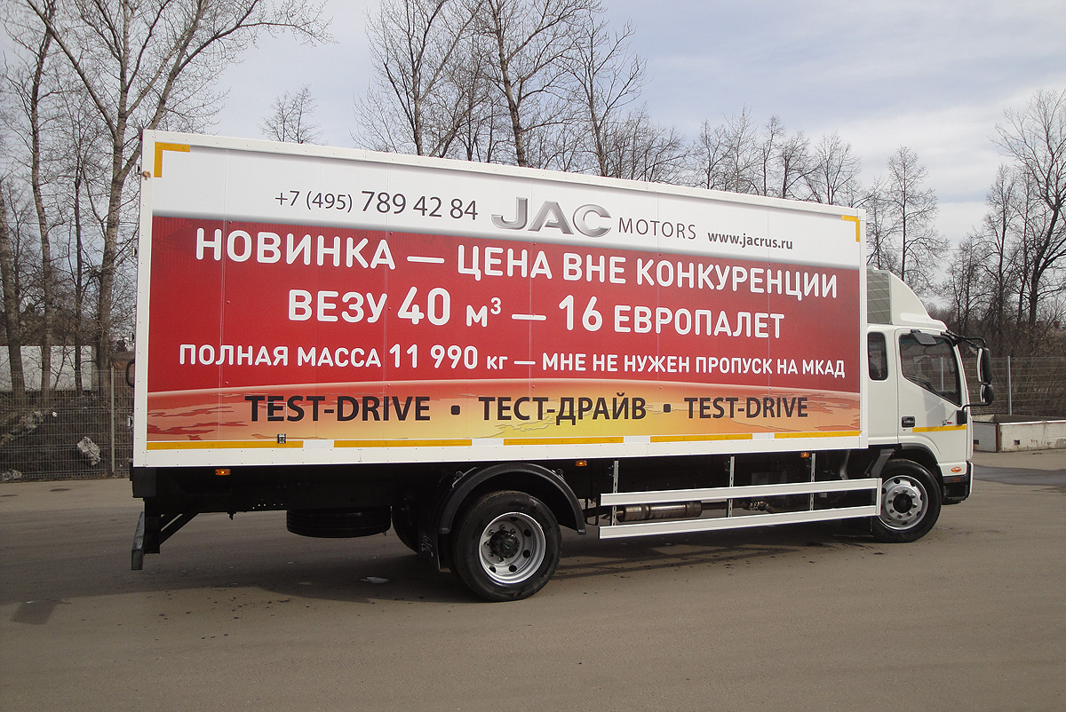 Полная масса JAC N120 составляет 11 990 кг, поэтому машина не попадает под действие системы «Платон». Грузоподъемность шасси, равная 7690 кг, колесная база — 4700 мм и монтажная длина грузового отсека — 6200 мм позволяют монтировать широкую гамму надстроек.
