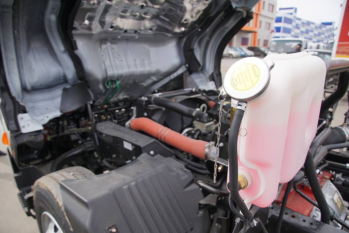 Впечатляет стандартная комплектация «китайца». Сюда входят: бортовой компьютер с русифицированным LCD-дисплеем, радиоприемник с МР3, антенной и динамиками в дверях, пепельницы в боковых дверях, солнцезащитные козырьки и потолочные полки в кабине, проводка под тахограф и разъем для его подключения.