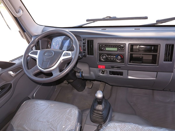 Обзор хороший. Кабина расположена не слишком низко – проезжую часть видно даже над крупными внедорожниками. Не слишком просторное, но в целом удобное и грамотно продуманное рабочее место водителя. Ящичков и ниш для вещей также хватает с лихвой.