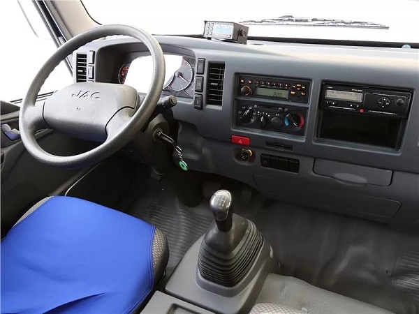 Рычаг переключения скоростей на подиуме расположен удачно и удобен в использовании, а вот кран стояночного тормоза находится несколько сзади под правой рукой. К нему надо тянуться, к тому же, если не повернуть голову, его визуально не видно, что не очень удобно, по мнению некоторых владельцев «JAC N75». Дизель – экономичный, надёжный, проверенный на десятке грузовиков других производителей. Его не назовёшь очень мощным, но для грузовика такого формата его возможностей хватает вполне. Тянет стабильно и уверенно – что с пустой, что с полной «будкой», при максимальной загрузке. Запускается без каких-либо проблем, даже зимой, при температуре -20 градусов.