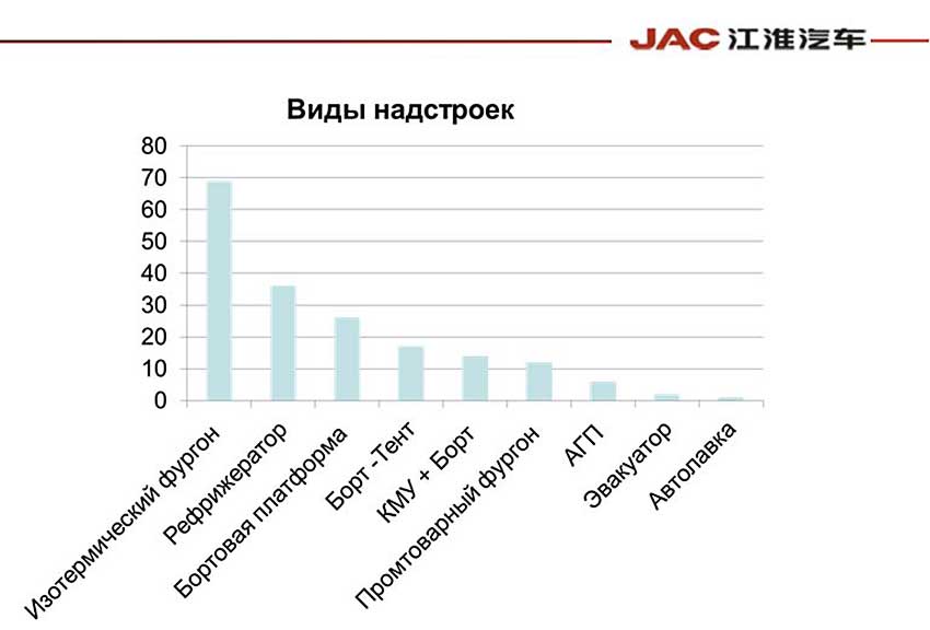 Одним из отличительных качеств автомобилей JAC стала установка комплектующих ведущих мировых производителей, таких как Cummins, Bosch, Webasto и других.