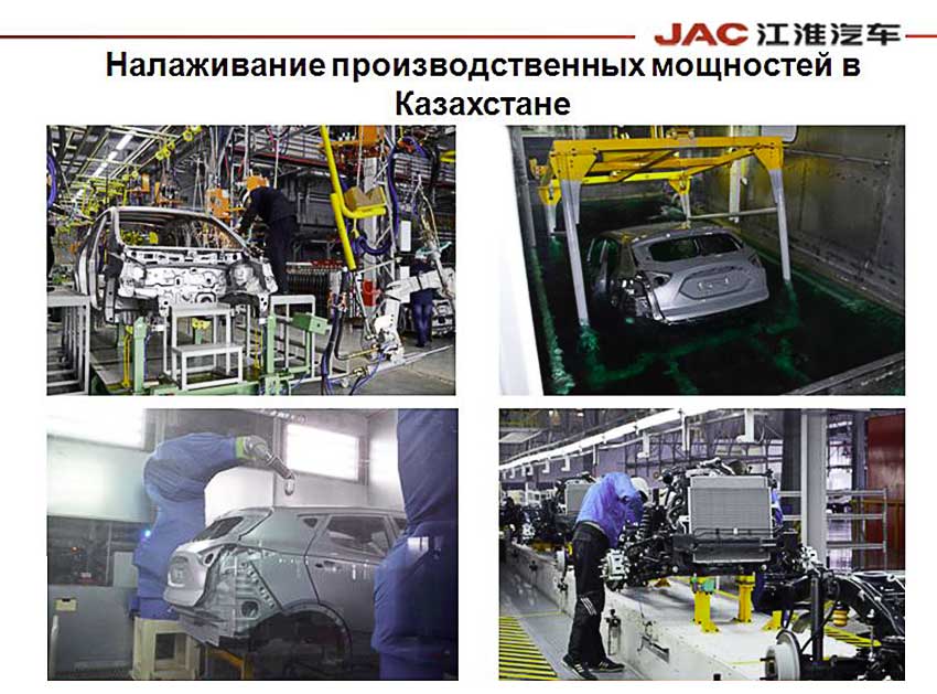 Начата сборка автомобилей JAC на заводе в Костанае Республика Казахстан. На базе этого завода уже началась промышленная сборка автомобилей. В конце прошлого года была произведена первая партия автомобилей по технологии крупноузловой сборки (SKD). Автомобили были собраны на высоком техническом уровне и уже реализованы клиентам. По результатам было принято решение начать на базе этого завода сборку коммерческих автомобилей N-серии, тяжелой техники с разными вариантами колесной базы, также увеличение локализации производства для получения сертификата СТ1. На 2018 год запланировано собрать порядка 300 шасси.