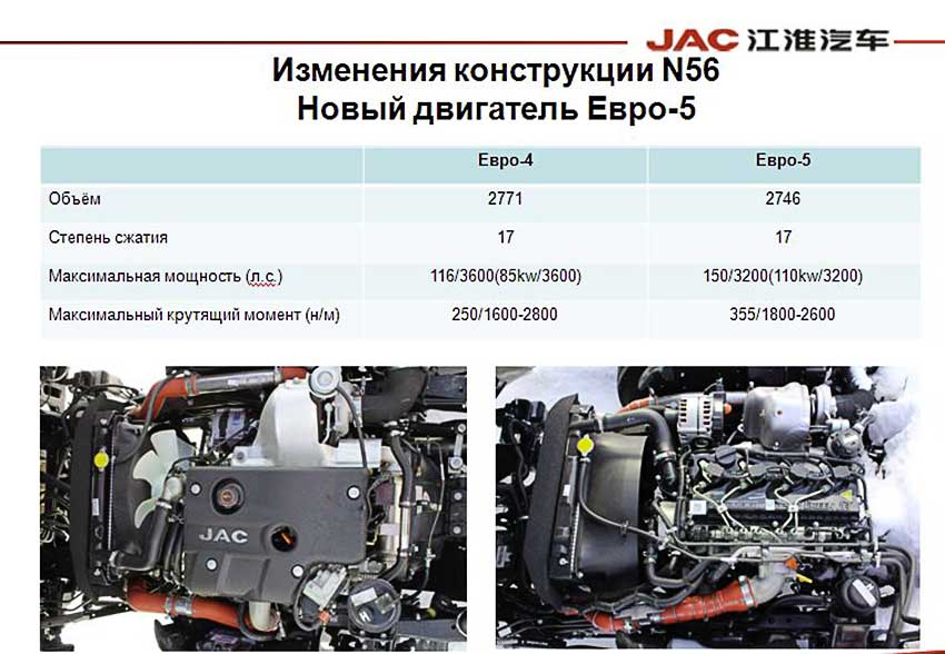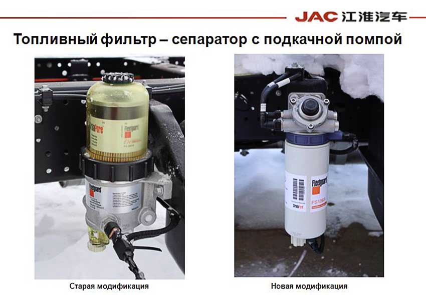 По проблемам рекламаций JAC подробно расписал все проблемы по моделям. Так по шасси N56 (реализовано 82 ед.) в двигателе JAC HFC4DA1-2C были проблемы с фильтром картерных газов, которые были устранены исключением данного узла из цепи.