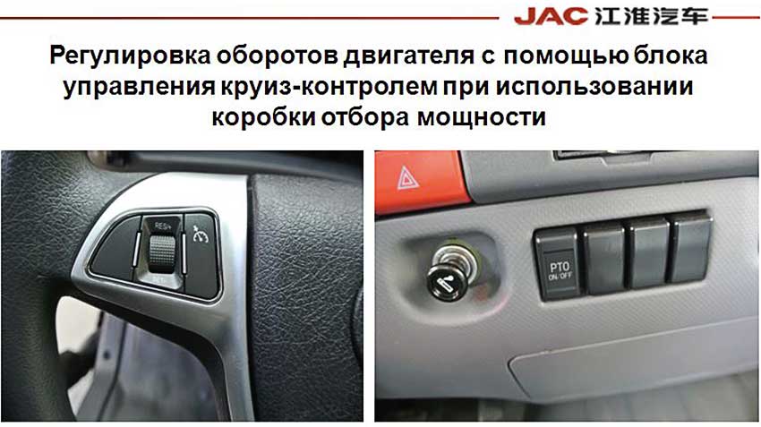 Регулирование оборотов двигателя при подключении коробки отбора мощности выполняется регулятором на руле.