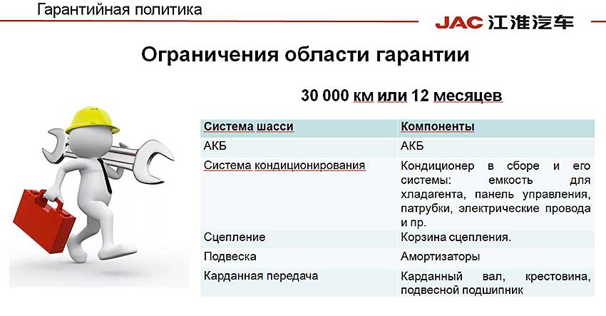 Гарантия на грузовые автомобили JAC ныне составляет 36 месяцев или 200 000 км.