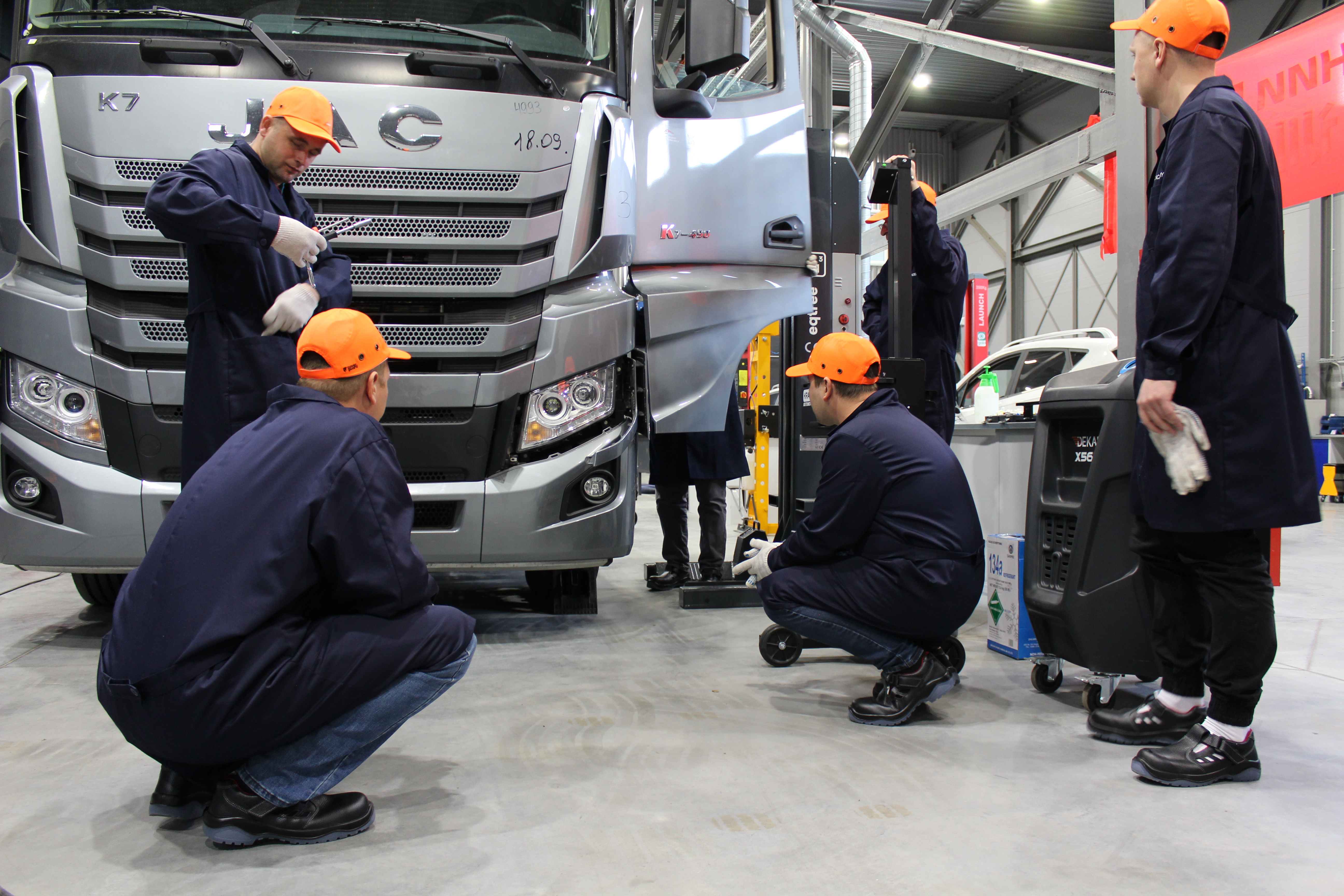 Наиболее востребованным направлением в Академии является повышение квалификации технических специалистов. Их обучение охватывает все уровни сервиса от базового обслуживания автомобилей до сложного ремонта и диагностики. Под каждую модель грузовиков JAC — N90, N120, N200 и K7 — разработана модульная программа. После базового курса, посвященного определенной модели и особенностям ее конструкции, можно пройти углубленные курсы по отдельным агрегатам и системам автомобиля, таким как двигатель, трансмиссия, тормозная система, рулевое управление и подвеска. Особое внимание уделяется электрике и общей диагностике.