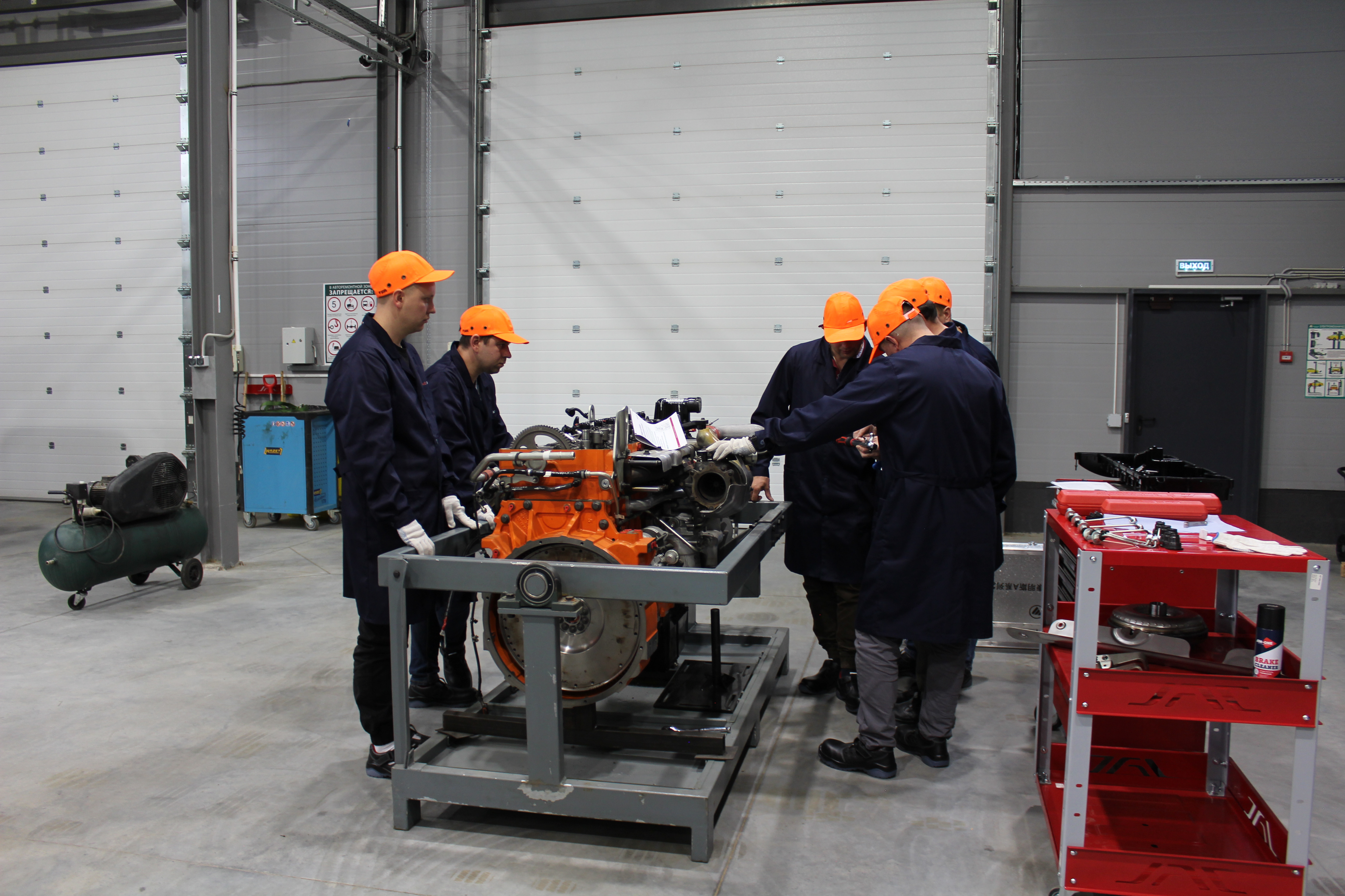 В распоряжении обучающихся — учебные классы и зона для практических занятий, имитирующая реальную мастерскую: на площади в 600 кв. м расположены две линии сервиса, весь модельный ряд автомобилей JAC, реальные узлы и агрегаты, современные стенды для их диагностики и ремонта, а также все необходимое оборудование.