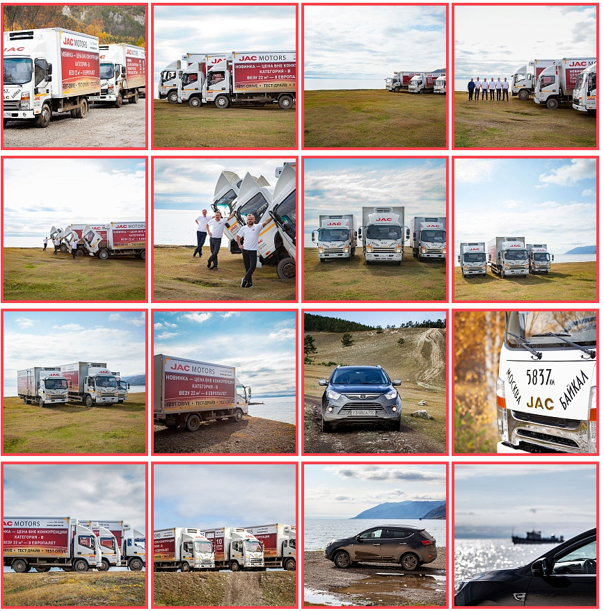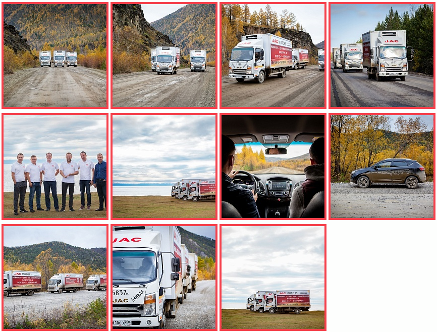 - Все 3 модели грузовика JAC N56, JAC N75, JAС N120 и модель легкового автомобиля JAC S5 преодолели расстояние более чем 6000 км и достигли поставленной финальной точки – озеро Байкал без каких-либо поломок и проблем в эксплуатации, доказав тем самым надежность автомобилей компании JAC MOTORS;