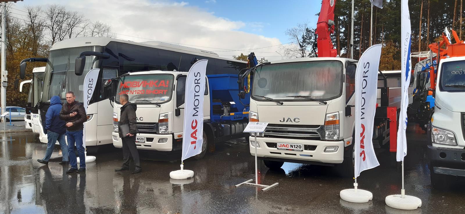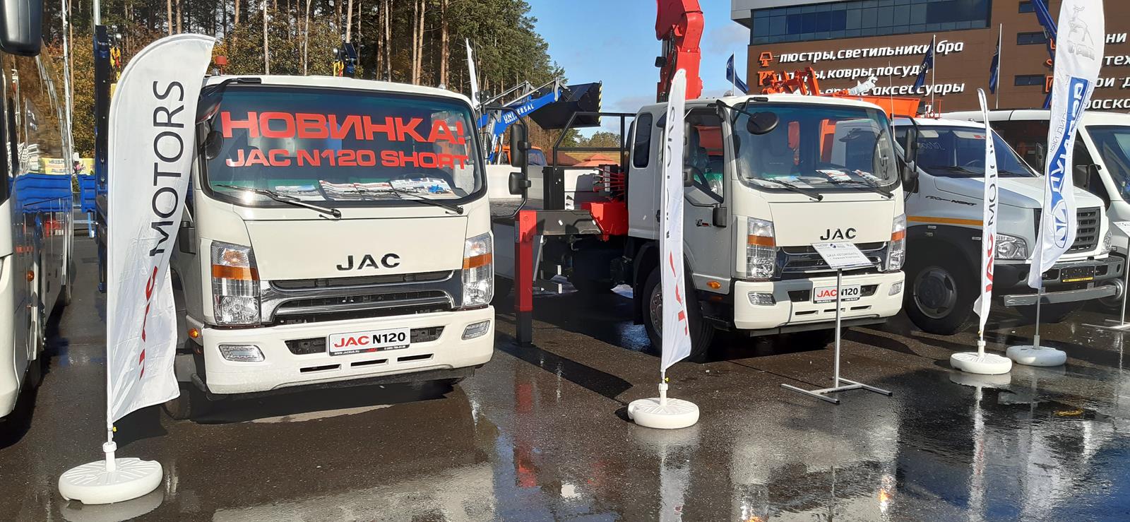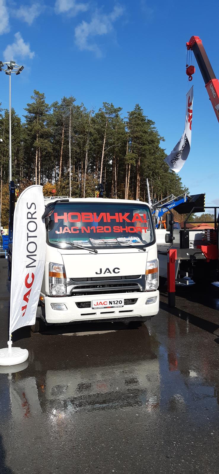 Компания JAC Motors совместно с нижегородским производителем надстроек L-Pro продемонстрировала на выставке наиболее востребованную у перевозчиков модель JAC N120 в двух модификациях. Посетители выставки смогли впервые увидеть двенадцатитонник в новой версии «Short» с укороченной колесной базой и спальной кабиной. Благодаря универсальной конструкции шасси, автомобиль хорошо подходит для установки различного специального оборудования. Компания L-Pro использовала новый короткобазный JAC N120 в качестве основы для портального погрузчика грузоподъемностью до 5500 кг. Автомобиль может перевозить одновременно два пустых бункера, и предназначен для разгрузки контейнеров самосвальным методом. Грузозахваты и цепи регулируются по длине, что дает возможность перевозить контейнеры разного размера.