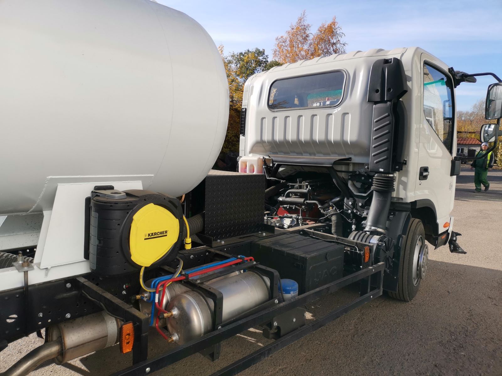 Недавно официальный дилер из Новосибирска ООО «ТК Комтранс» в сотрудничестве с нижегородскими партнерами поставил поливомоечную машину на обновленном шасси JACN80. Автомобиль оснащен системами для полива и мойки проезжей части, тротуаров и забора воды. На шасси установлено поливомоечное оборудование, включающее центробежный насос и стальную цистерну объемом 4 куб. м. Емкость внутри разделена на несколько отсеков, которые имеют между собой сообщение. Достаточный объём цистерны позволяет перевозить воду и поливать растения, газоны и деревья в городских парках и скверах.