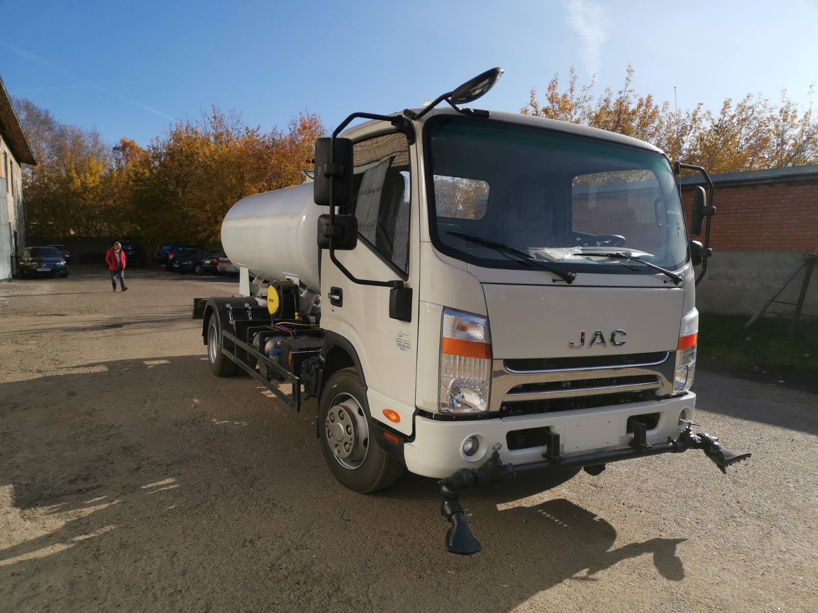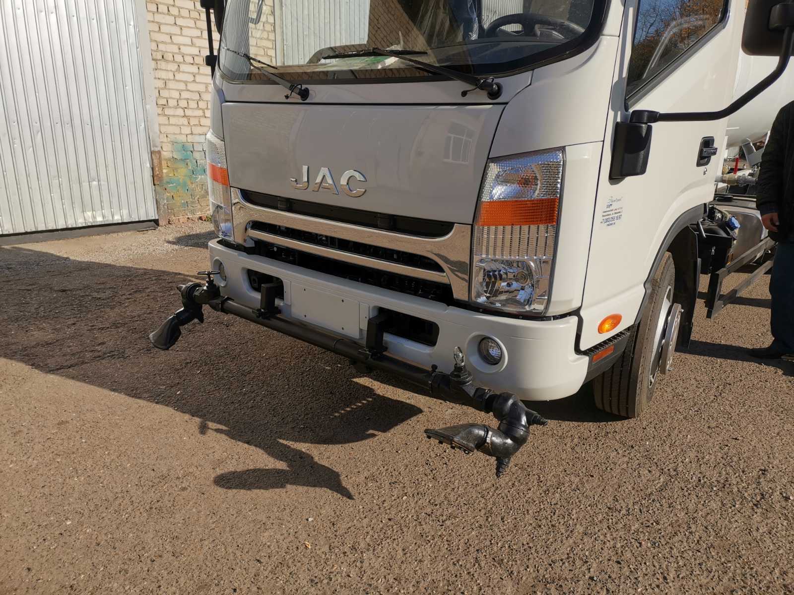 Шасси JACN80 полной массой 7950 кг появилось на российском рынке весной 2019 года, и сразу завоевало популярность благодаря удачным массово-габаритным показателям. Среднетоннажник оснащен 152-сильным турбодизельным двигателем Cummins рабочим объемом 3,8 л экологического стандарта Евро-5. Не последнюю роль в выборе шасси для установки тяжелого оборудования играют характеристики ходовой части, а в данном случае – надежность и грузоподъемность подвески, которая должна выдерживать вес заполненной цистерны.