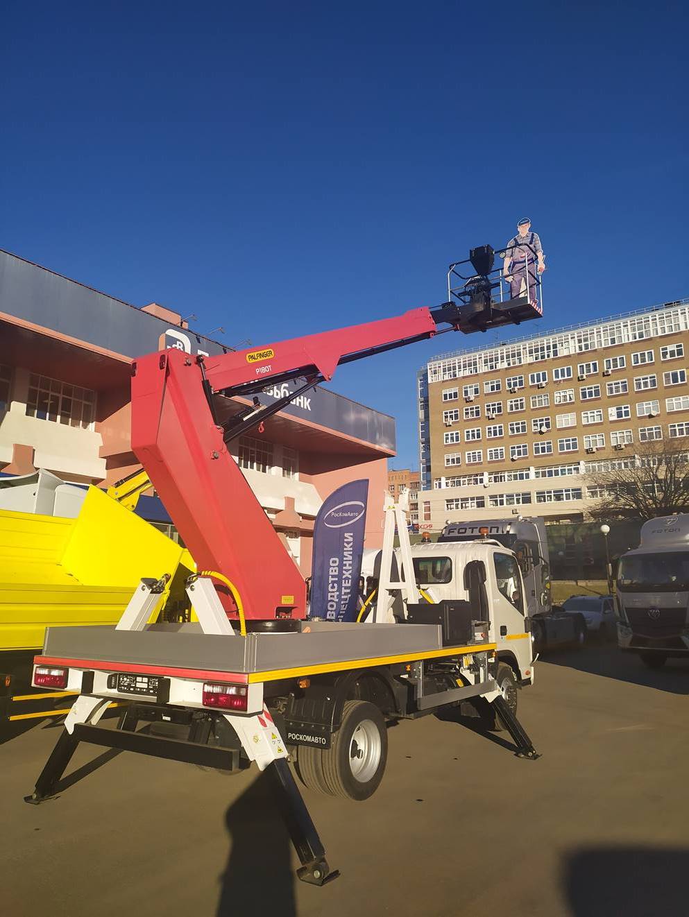 На экспозиции была представлена новинка на шасси JAC N56 - автовышка Palfinger P180T. Модель P180T производится в РФ на заводе «Велмаш», входящем в Группу Palfinger. Это первый гидроподъемник Palfinger отечественного производства, созданный исходя из потребностей российских заказчиков. Подъемник с высотой подъема 18 м и грузоподъемностью корзины 300 кг комплектуется штатным пультом дистанционного управления автовышкой. Среди особенностей модели – возможность монтажа как корзиной вперед (над кабиной), так и над задним свесом.